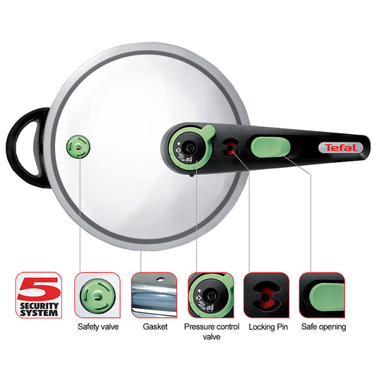 Tefal Eco Sensor 5-Security Stainless Steel Pressure Cooker (4.5L) Dishwasher Safe Silver