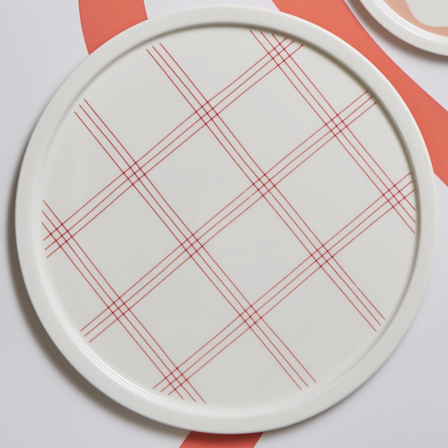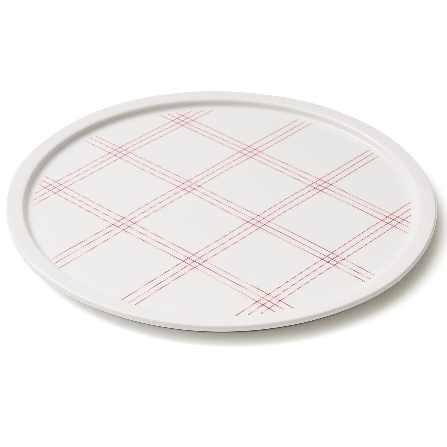 Fabric-like red grid is applied.
