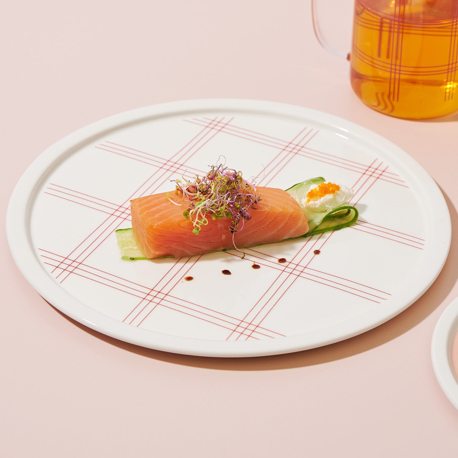 Deep green brush stroke was added to the pure white plate to give it vitality.
