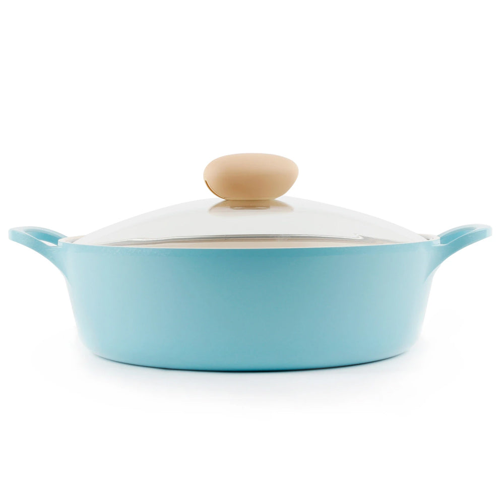 RETRO Cast Aluminum Ceramic Nonstick Saute Pan (22cm) with Glass Lid Dishwasher Safe No PFOA Blue