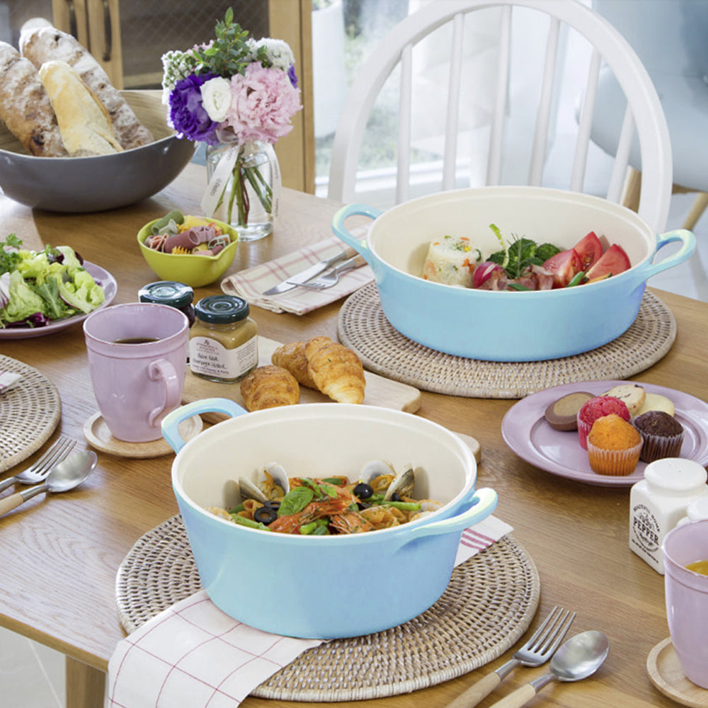 Whether you are cooking for yourself of your friends and family, Retro's pastel-like colors create an inviting ambiance.