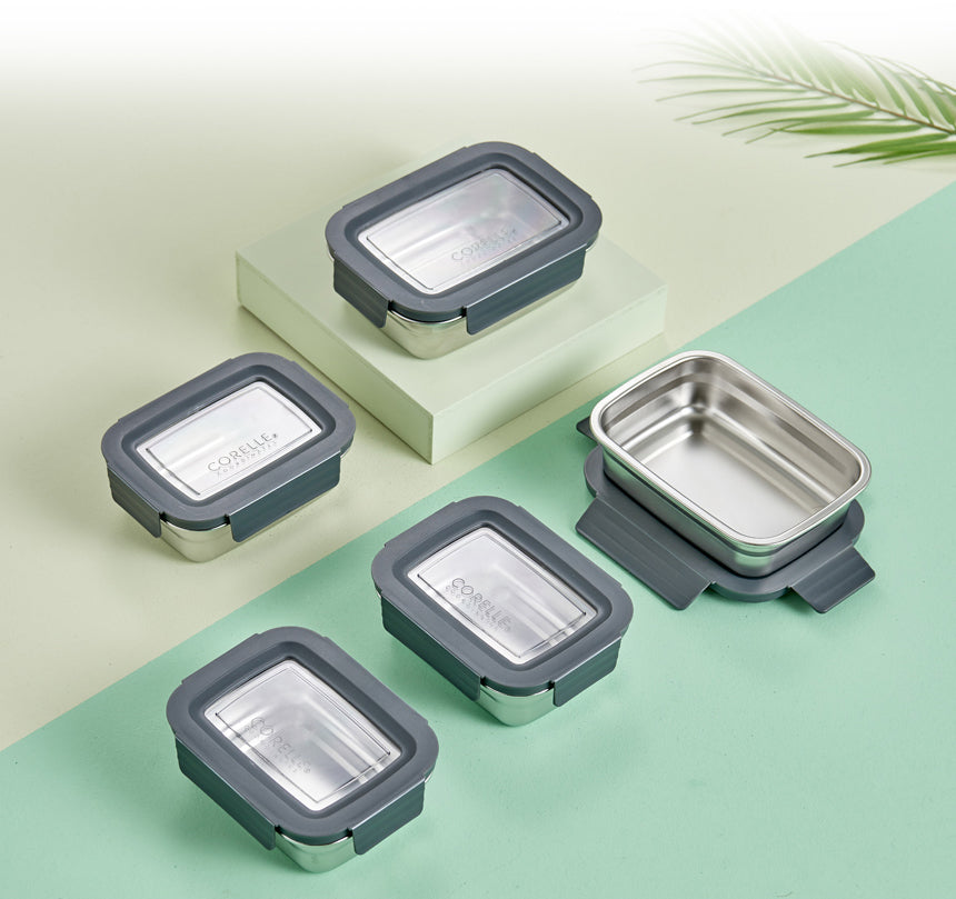Corelle Airtight Stainless Steel Food Storage Container 5p Dishwasher Safe