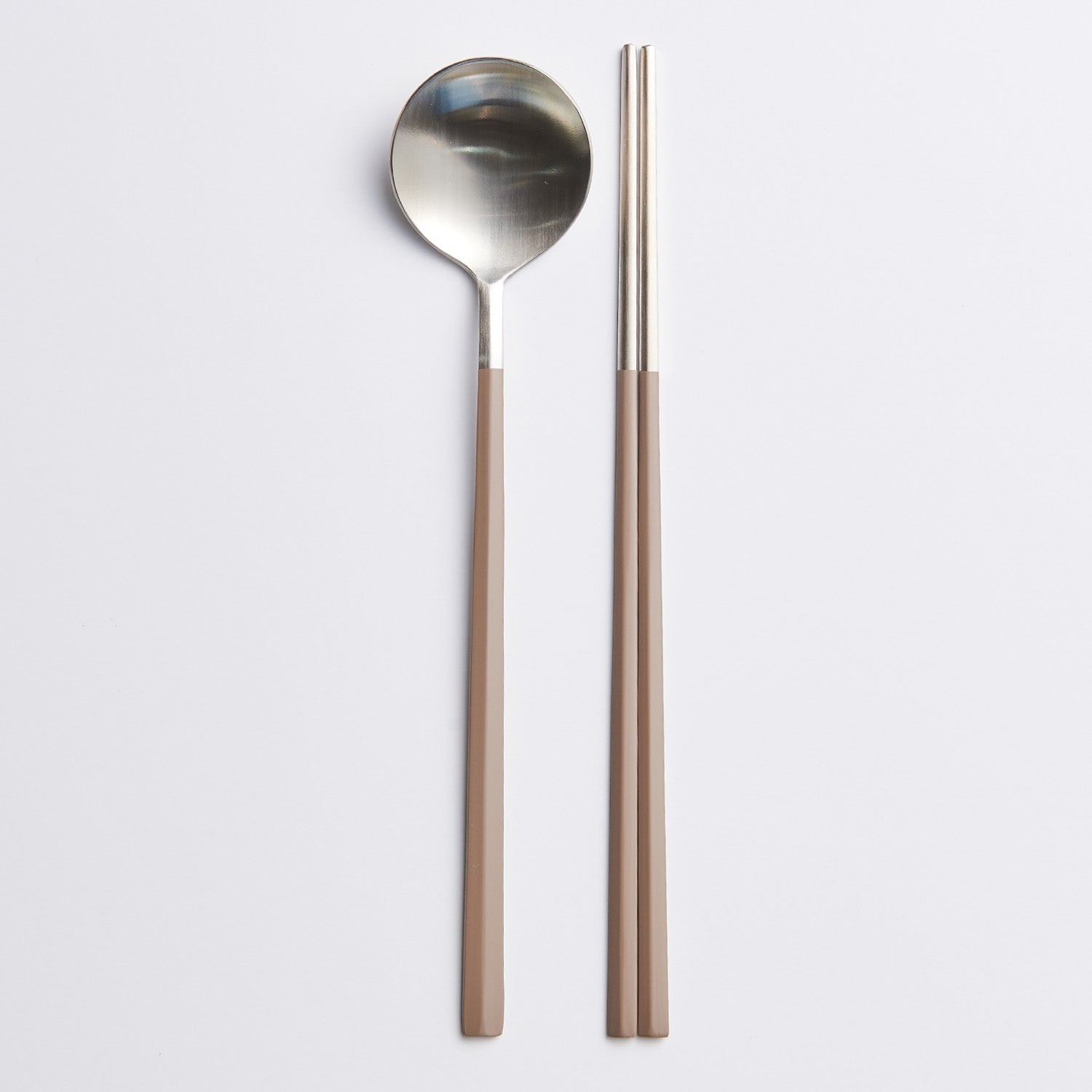 EBRO PREMIUM Stainless Steel (Spoon & Chopsticks) Set 2p Easy Grip Tableware Brown