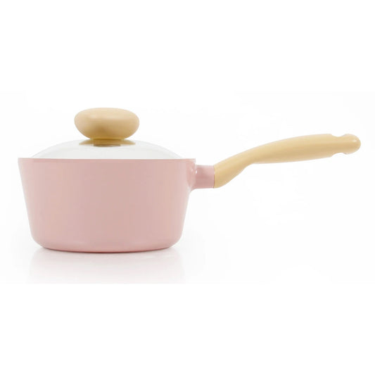 RETRO Cast Aluminum Saucepan (18cm) with Glass Lid Dishwasher Safe No PFOA Pink