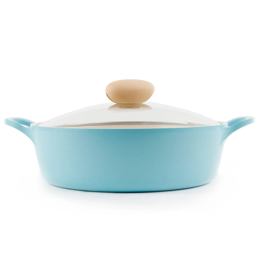 RETRO Cast Aluminum Stew Pot (22cm) with Glass Lid Dishwasher Safe No PFOA Blue