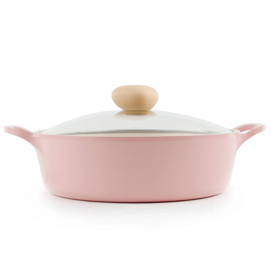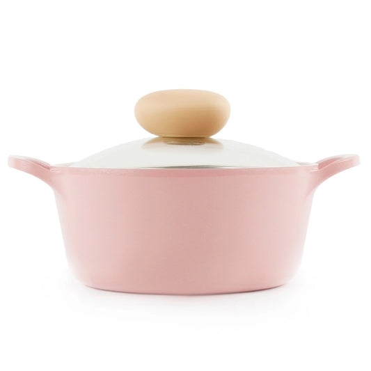 RETRO Cast Aluminum Stew Pot (22cm) with Glass Lid Dishwasher Safe No PFOA Pink