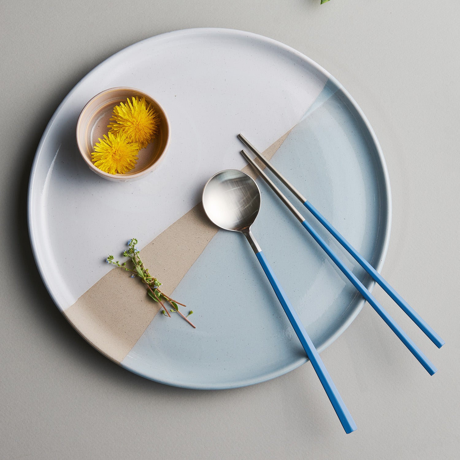 EBRO PREMIUM Stainless Steel (Spoon & Chopsticks) Set 2p Easy Grip Tableware Blue
