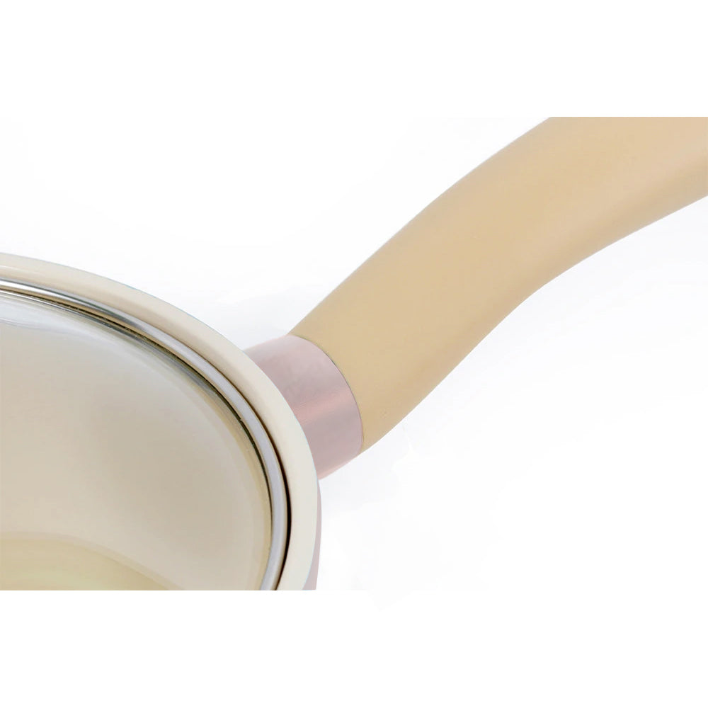 RETRO Cast Aluminum Saucepan (18cm) with Glass Lid Dishwasher Safe No PFOA Pink