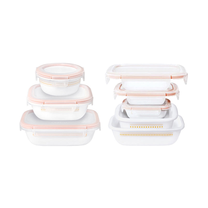 Corelle Jacquard Band Round Sealed Food Storage Container 5p Dishwasher Oven Safe Yellow