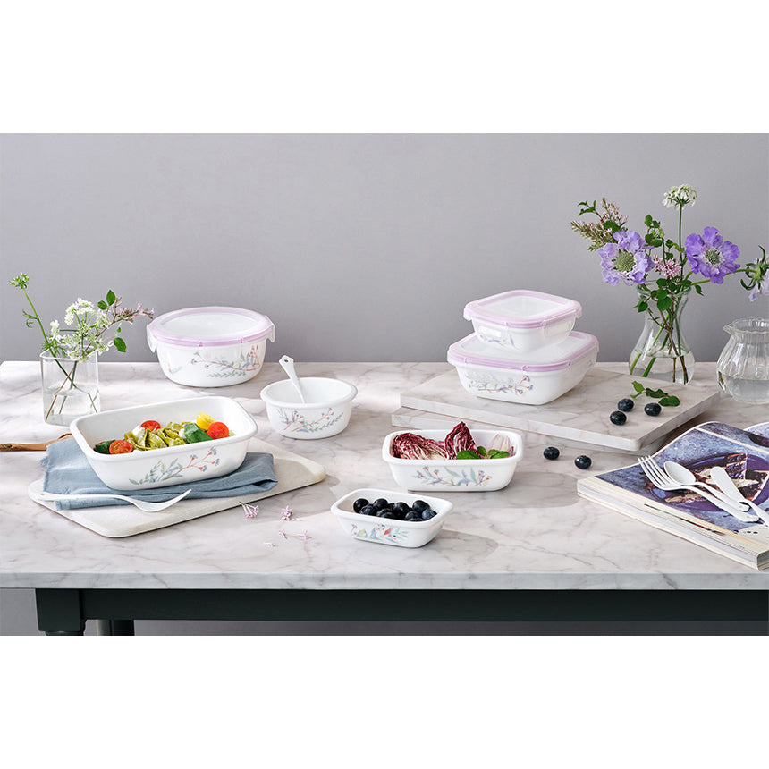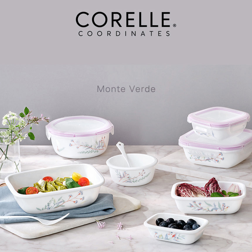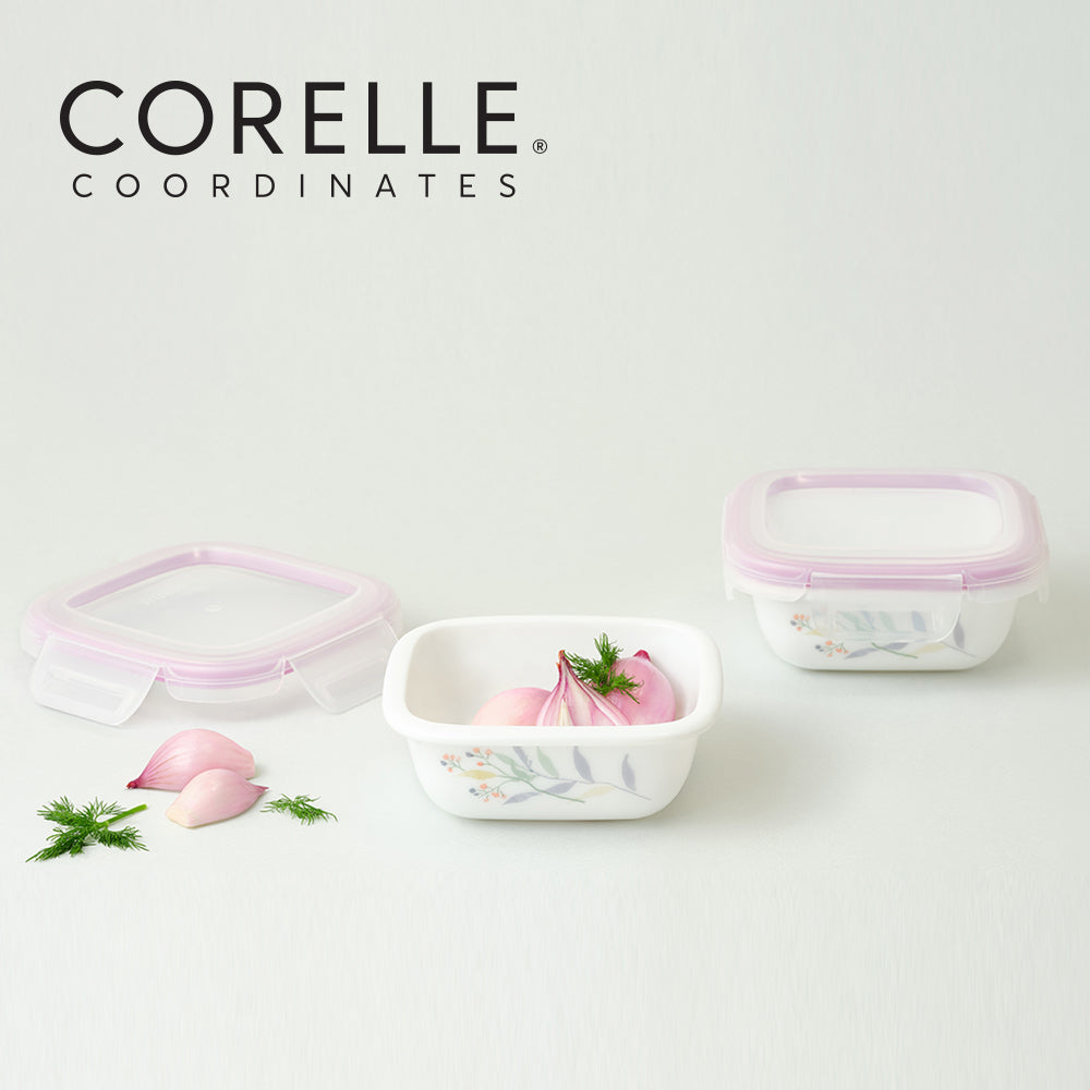 Corelle Monteverde San Jose Square Sealed Food Storage Container 2p (300ml) Dishwasher Oven Safe White