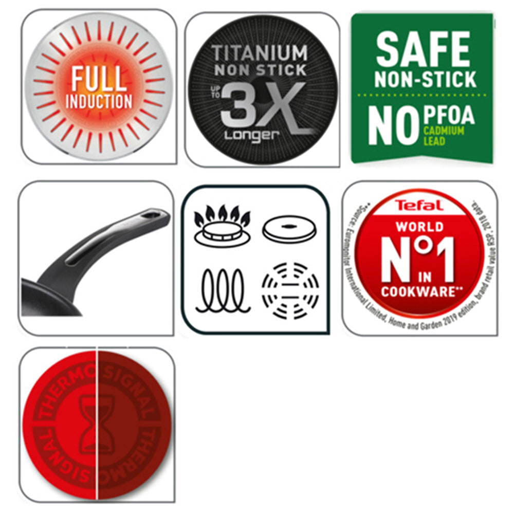 Titanium Force coating lasts up to 3 times longer than Tefal Powerglide coating only available on coated items