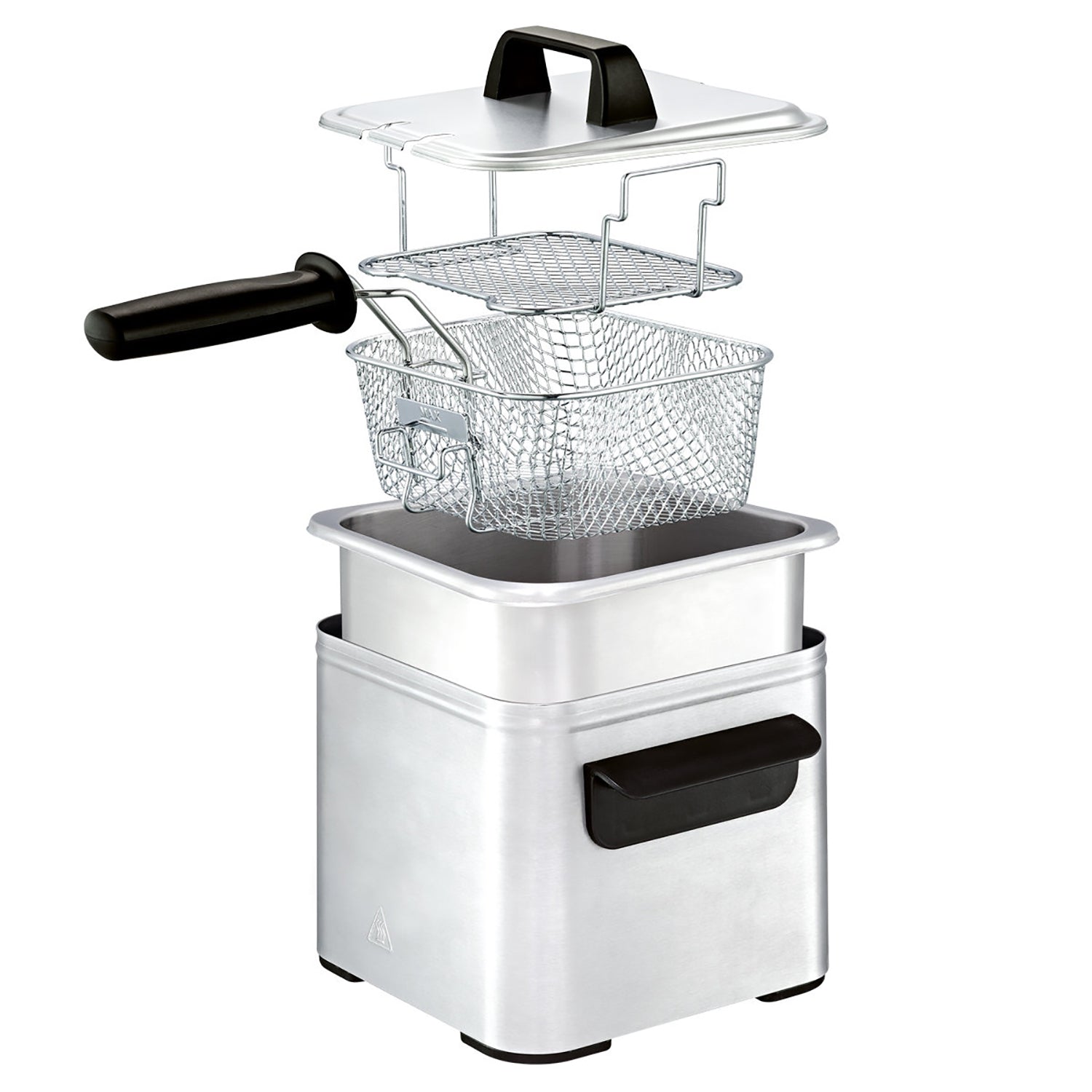 The Compact Pro is a semi-pro fryer with cool zone technology and a power of 1700W. It is a convenient smaller size for compact storage in small kitchens.