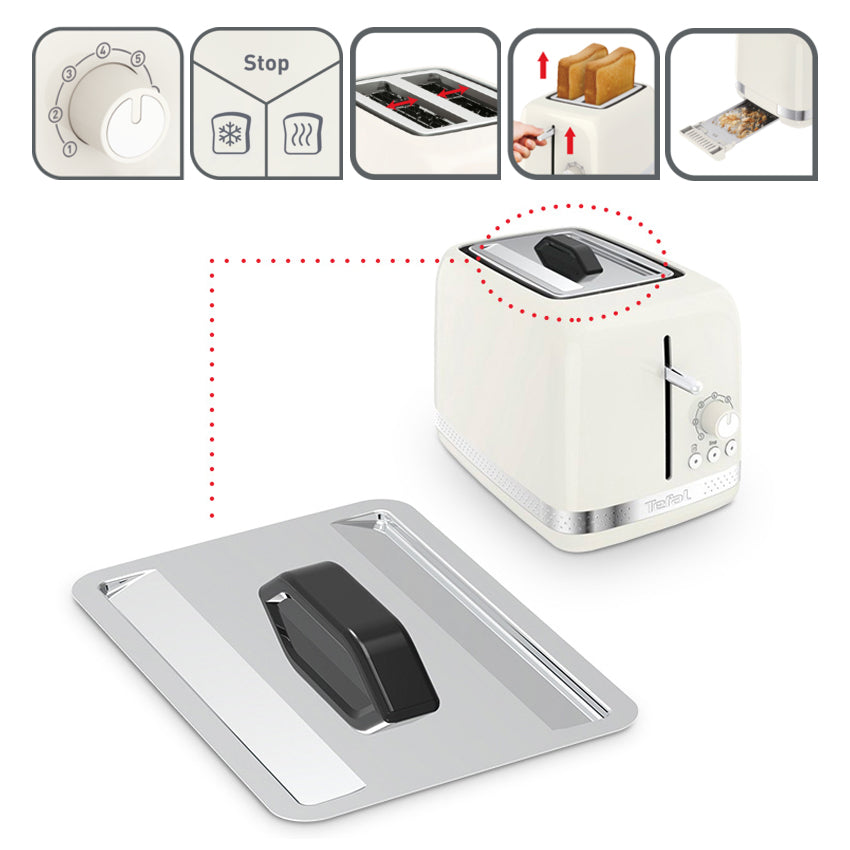 Tefal TT303A Soleil Toaster 2 Automatically Center Slot 7 Levels Indicator Lights 850W Ivory