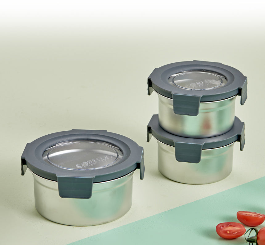 Corelle Airtight Stainless Steel Food Storage Container 3p Dishwasher Safe