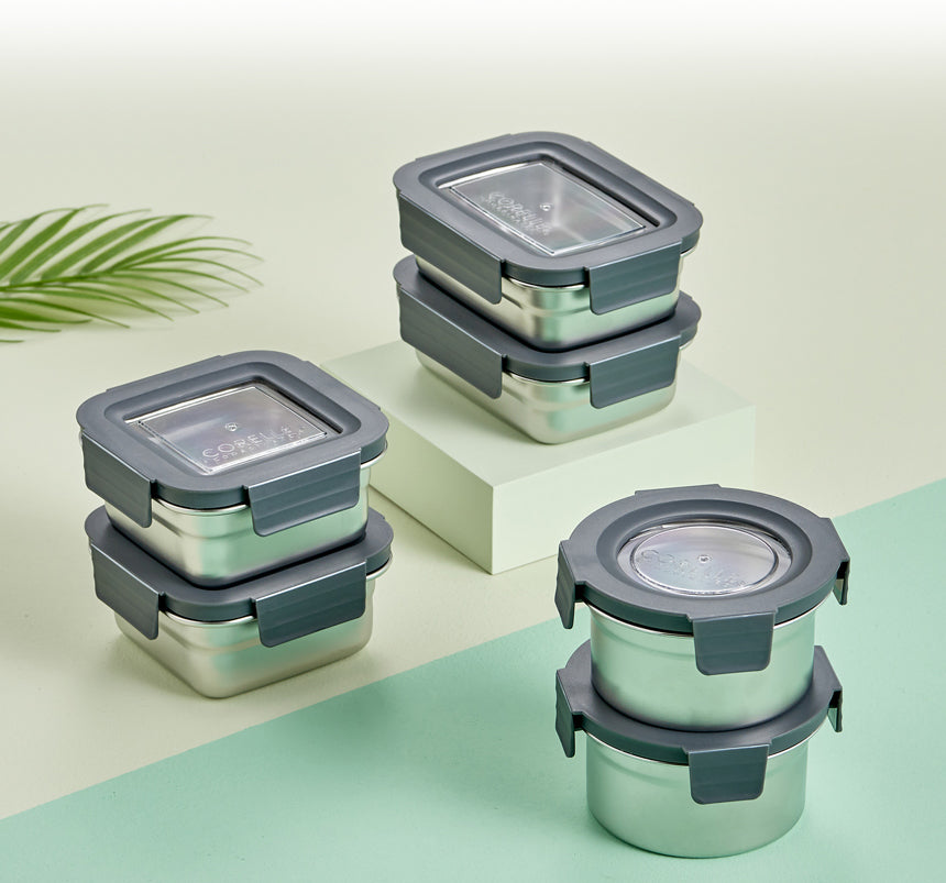 Corelle Airtight Stainless Steel Food Storage Container 6p Dishwasher Safe