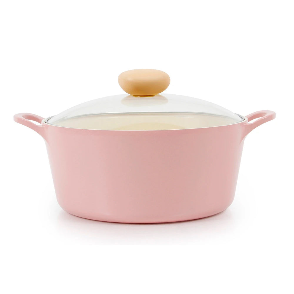 RETRO Cast Aluminum Ceramic Nonstick Stew Pot (22cm) with Glass Lid Dishwasher Safe No PFOA Pink
