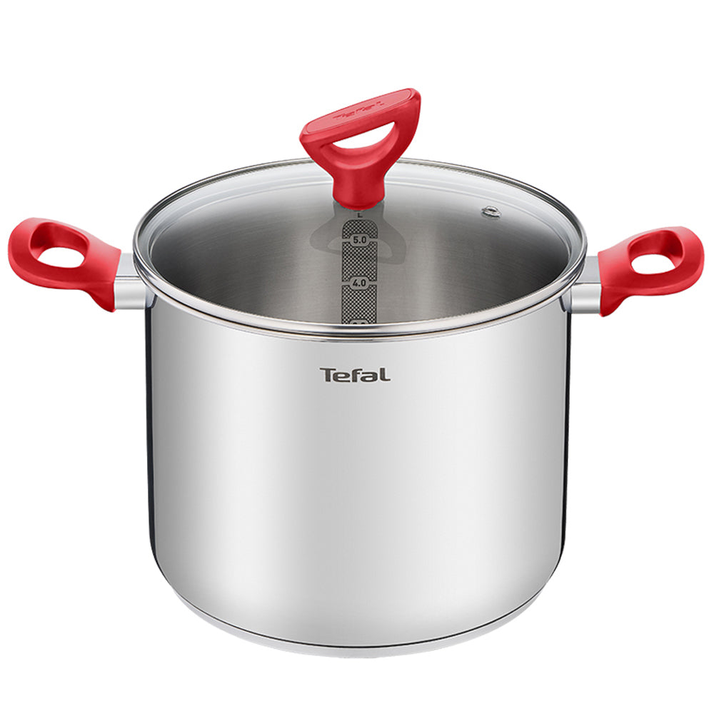 Tefal Edition Red Stainless Steel Induction Stockpot (22cm, 6.0L) Dishwasher Oven Safe No PFOA Silver