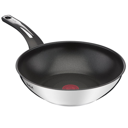 Tefal Emotion Stainless Steel Induction Wok Pan (28cm) Dishwasher Oven Safe No PFOA Silver