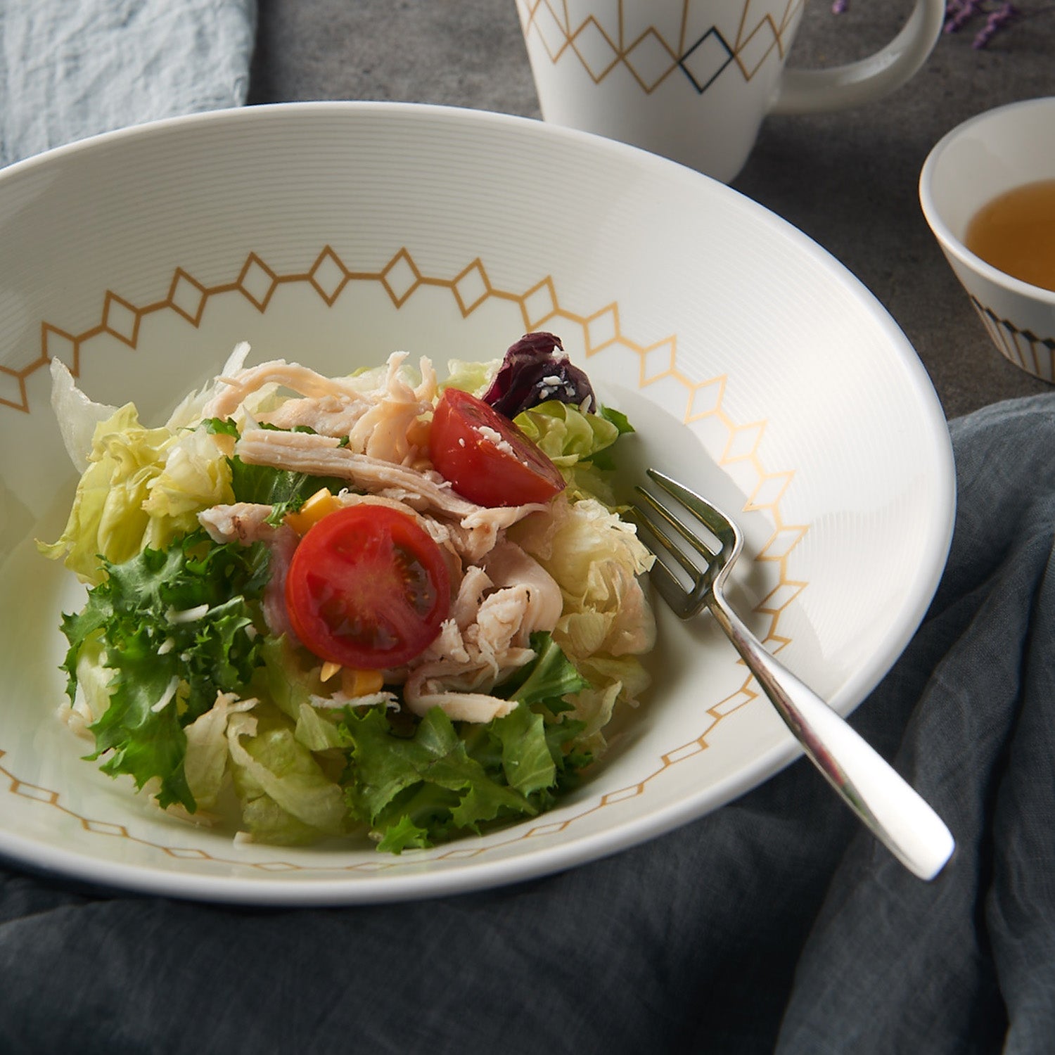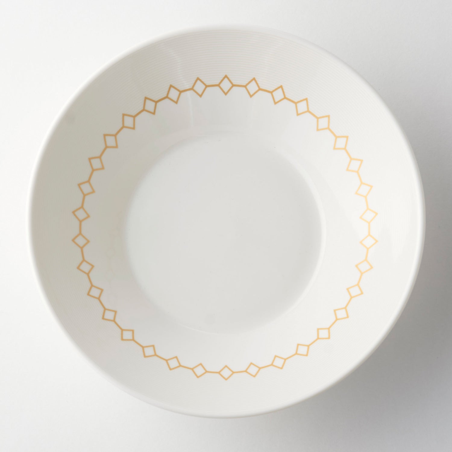 DIAS range is a high-end luxury tableware that modern-sense design. Gold line, silver gray and dark green color express luxurious urban life and provide a deep sense of harmony in everyday life. A pattern consisting of diamonds and lines blends with the color to indicate a sense of luxury and trendiness. It is a high-strength ceramics with no heavy metal (lead, cadmium, arsenic, etc) harmful substances and excellent heat resistance, cold resistance and abrasion resistance.