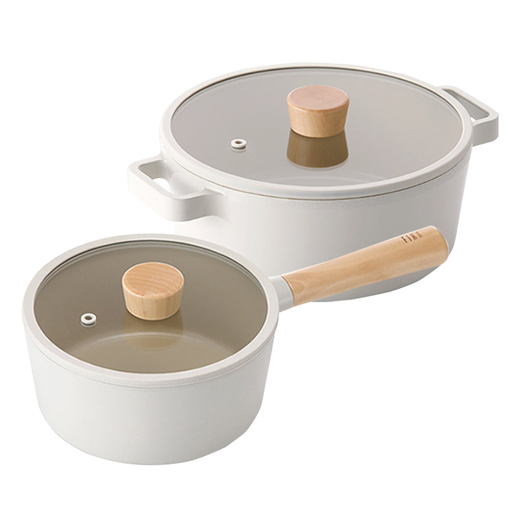 FIKA Induction Ceramic Saucepan (18cm) + Stew Pot (22cm) 2p No PFOA White