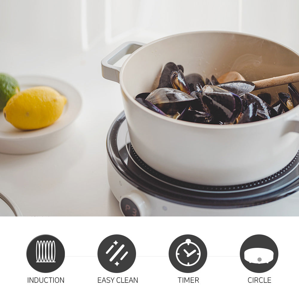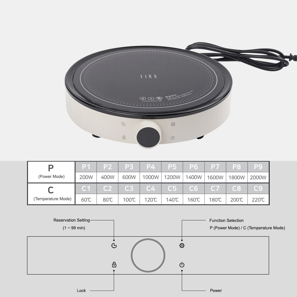 FIKA Round IH Induction Electric Hob (Range) One Touch Panel & Dial 2000W Black & White