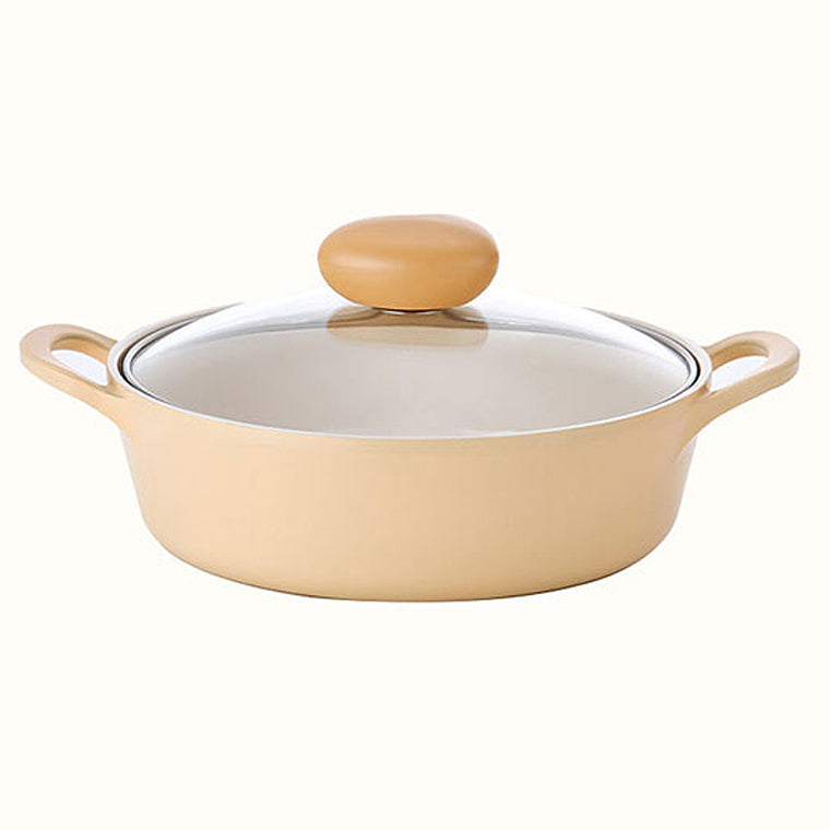 FLAN Induction Saute Pan (22cm) with Glass Lid Dishwasher Safe No PFOA Yellow