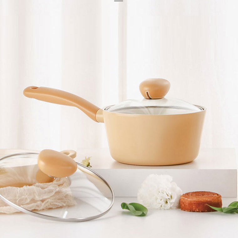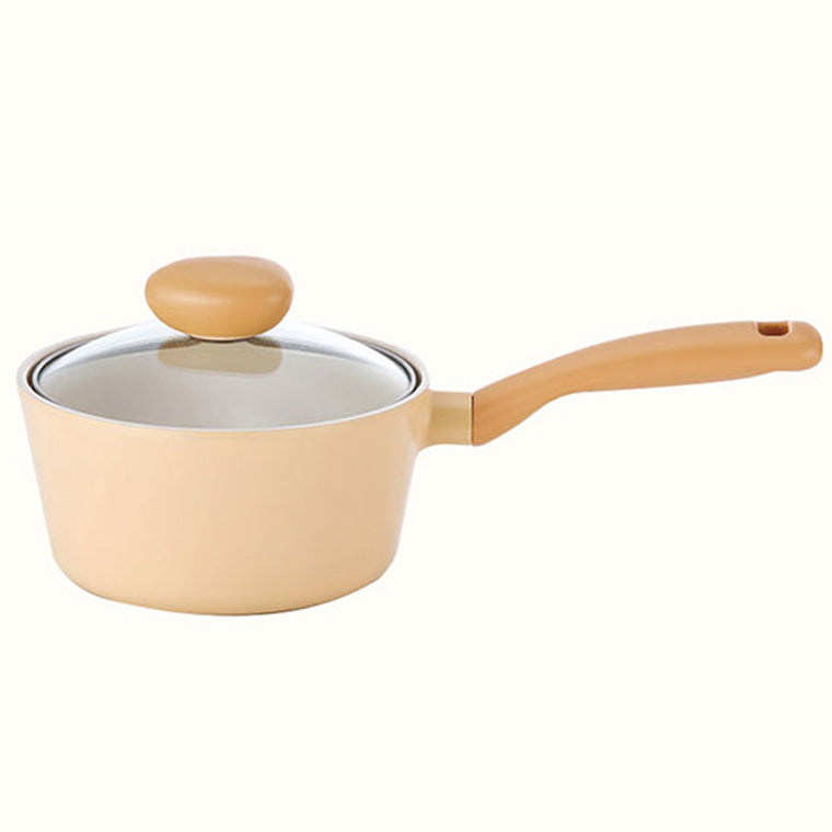 FLAN IH Induction Ceramic Nonstick Saucepan (18cm) with Glass Lid Dishwasher Safe No PFOA Yellow