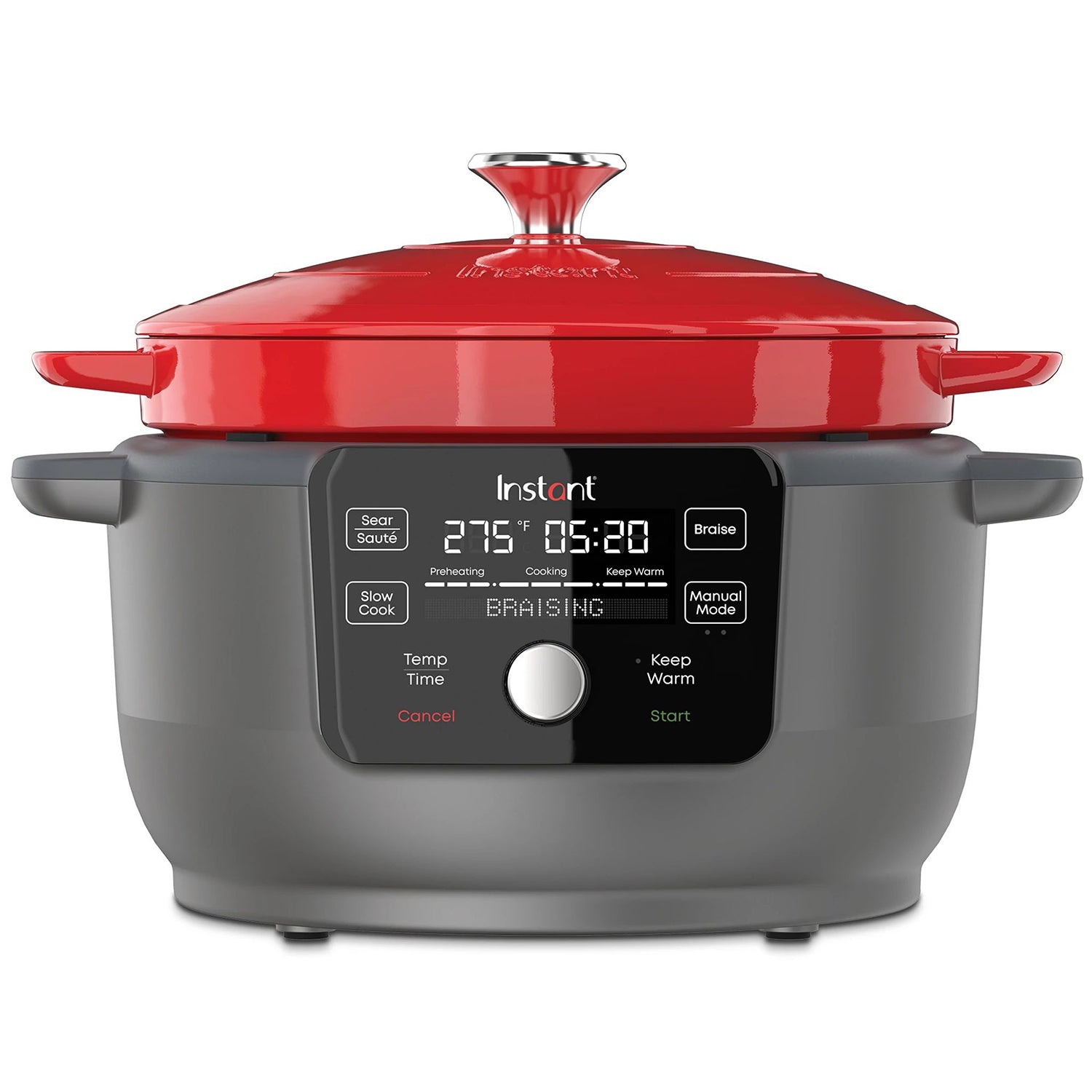 Instant Precision (5.7L) 5-In-1 Dutch Oven with Lid, Oven Safe No PFOA BPA Free 1500W Red