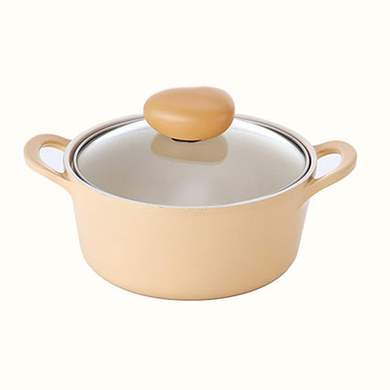 FLAN Induction Stew Pot (18cm) with Glass Lid Dishwasher Safe No PFOA Yellow