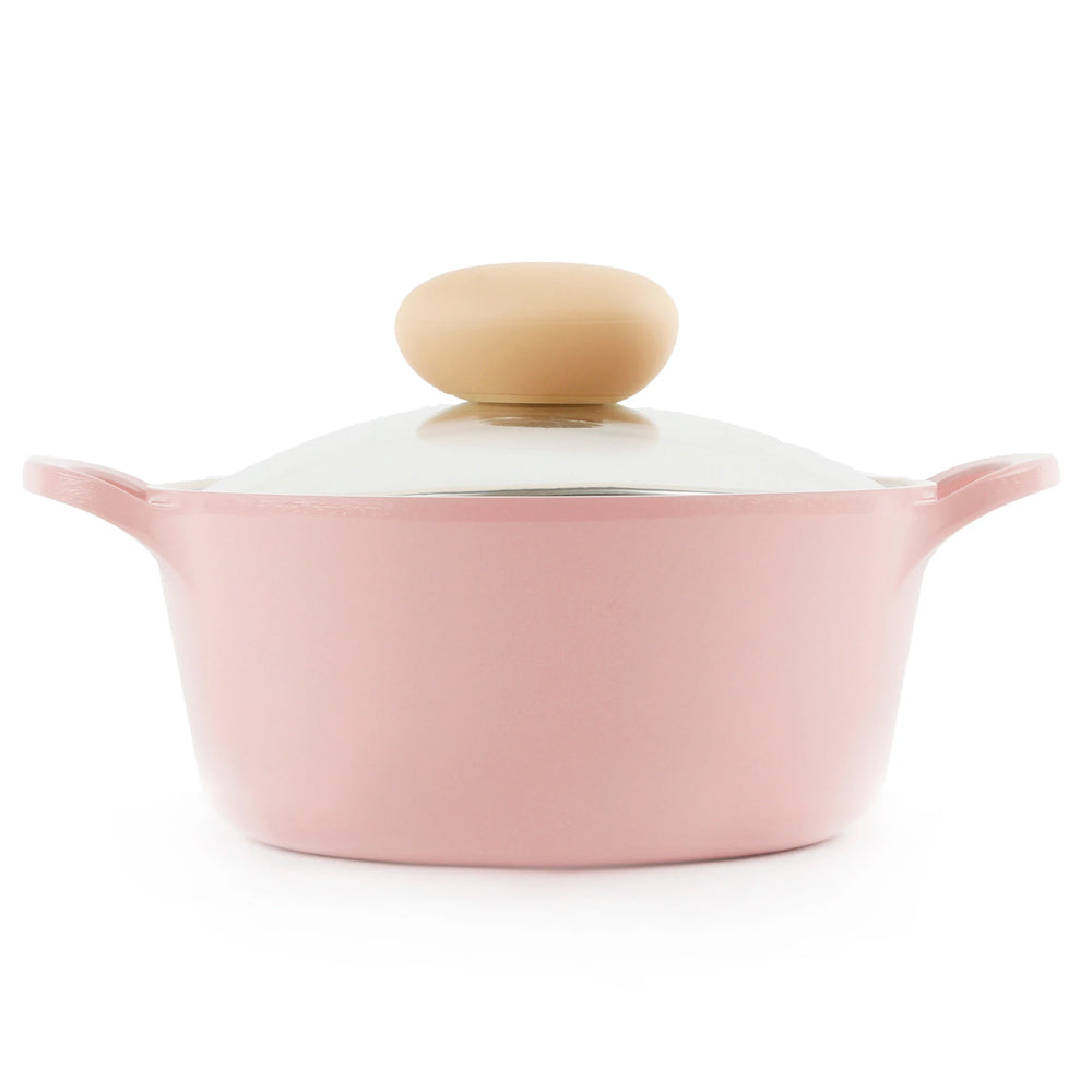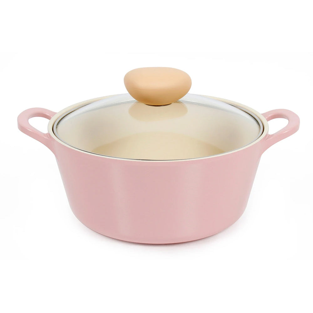 RETRO Cast Aluminum Ceramic Nonstick Stew Pot (18cm) with Glass Lid Dishwasher Safe No PFOA Pink