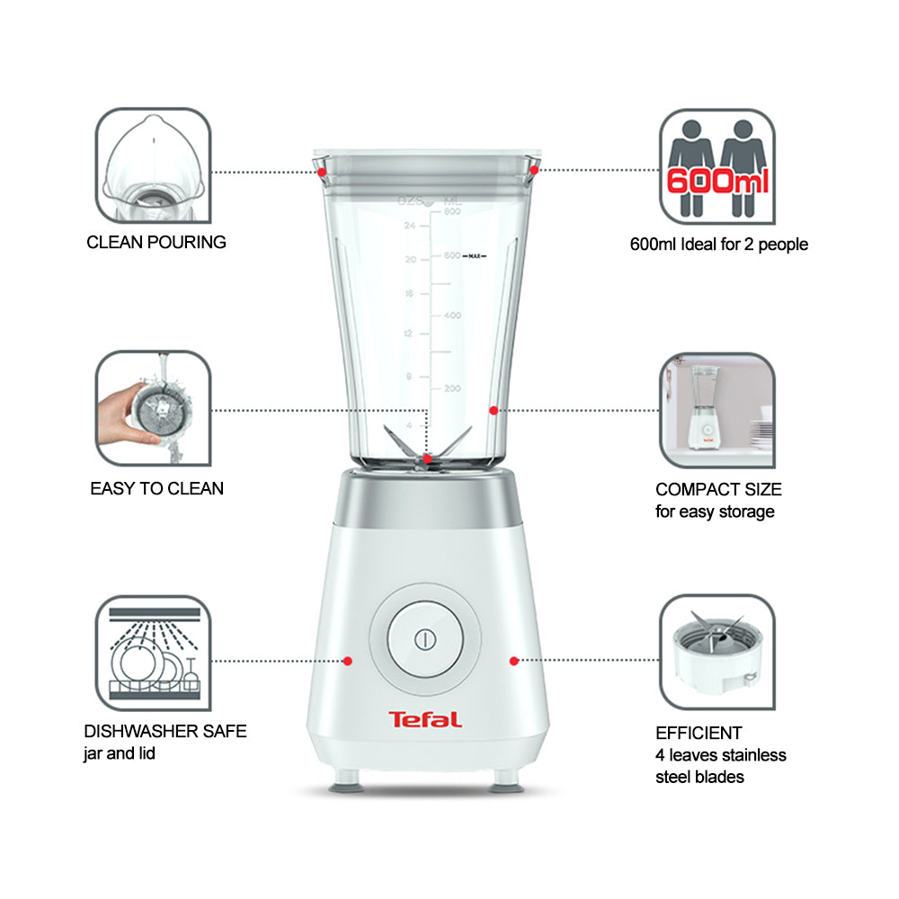 Tefal BL1K01 Refresh Compact Mini Blender Plastic (800ml) Jar 4 Blades 350W White