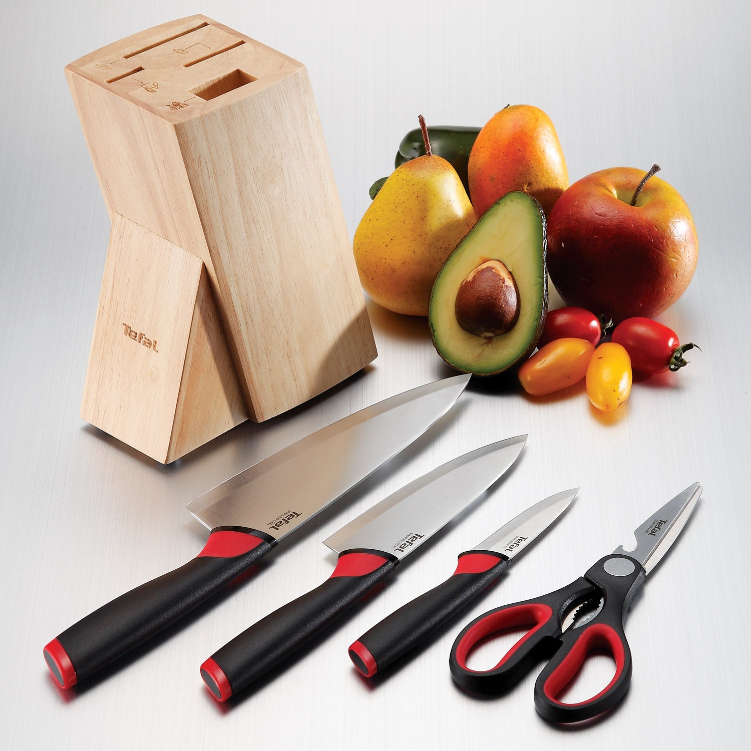 Tefal Collection 5p Stainless Steel Knife Block Set Black & Red