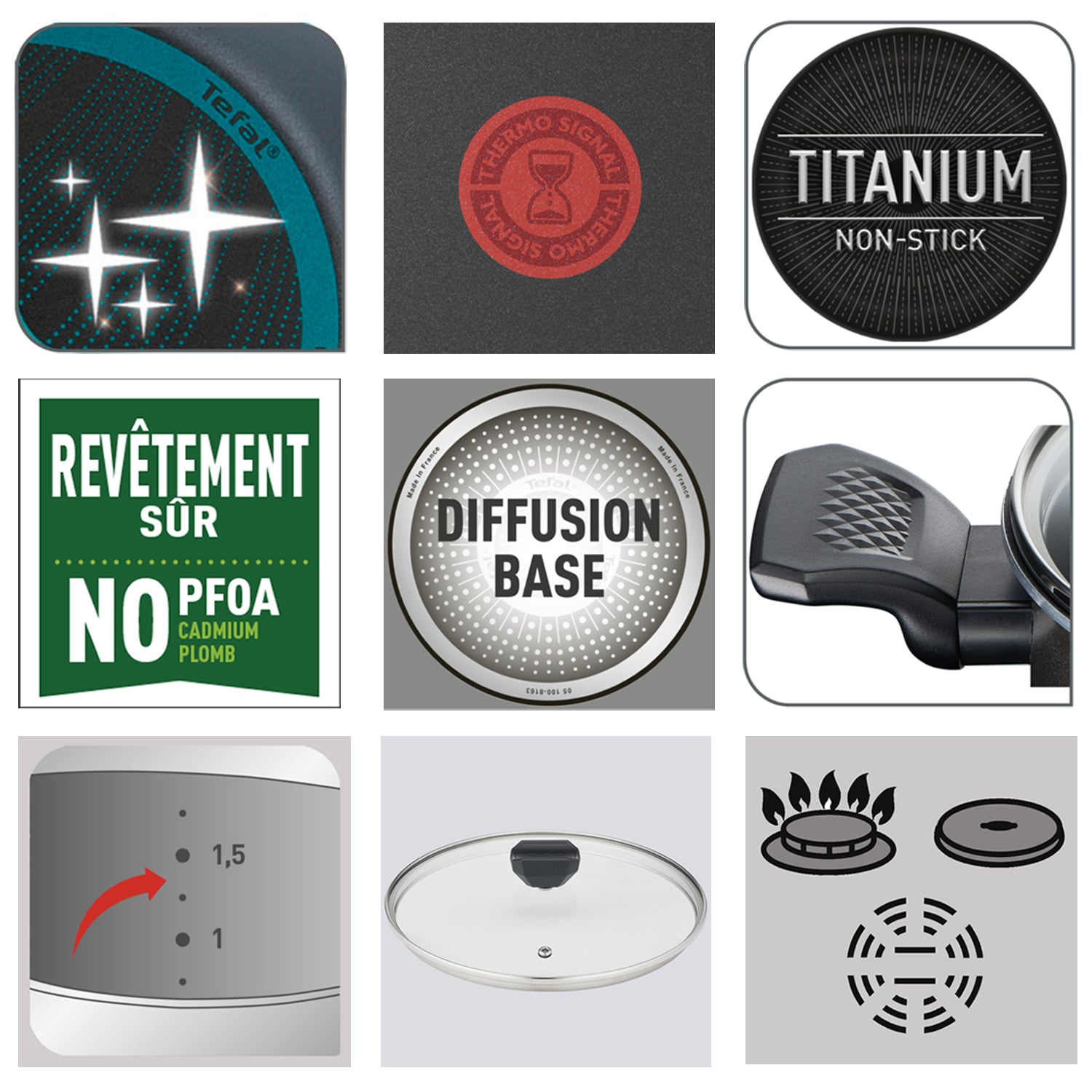 The high-quality non-stick coating is extra durable and resistant thanks to an ultra-reinforced structure and a protective coating enhanced with Titanium.