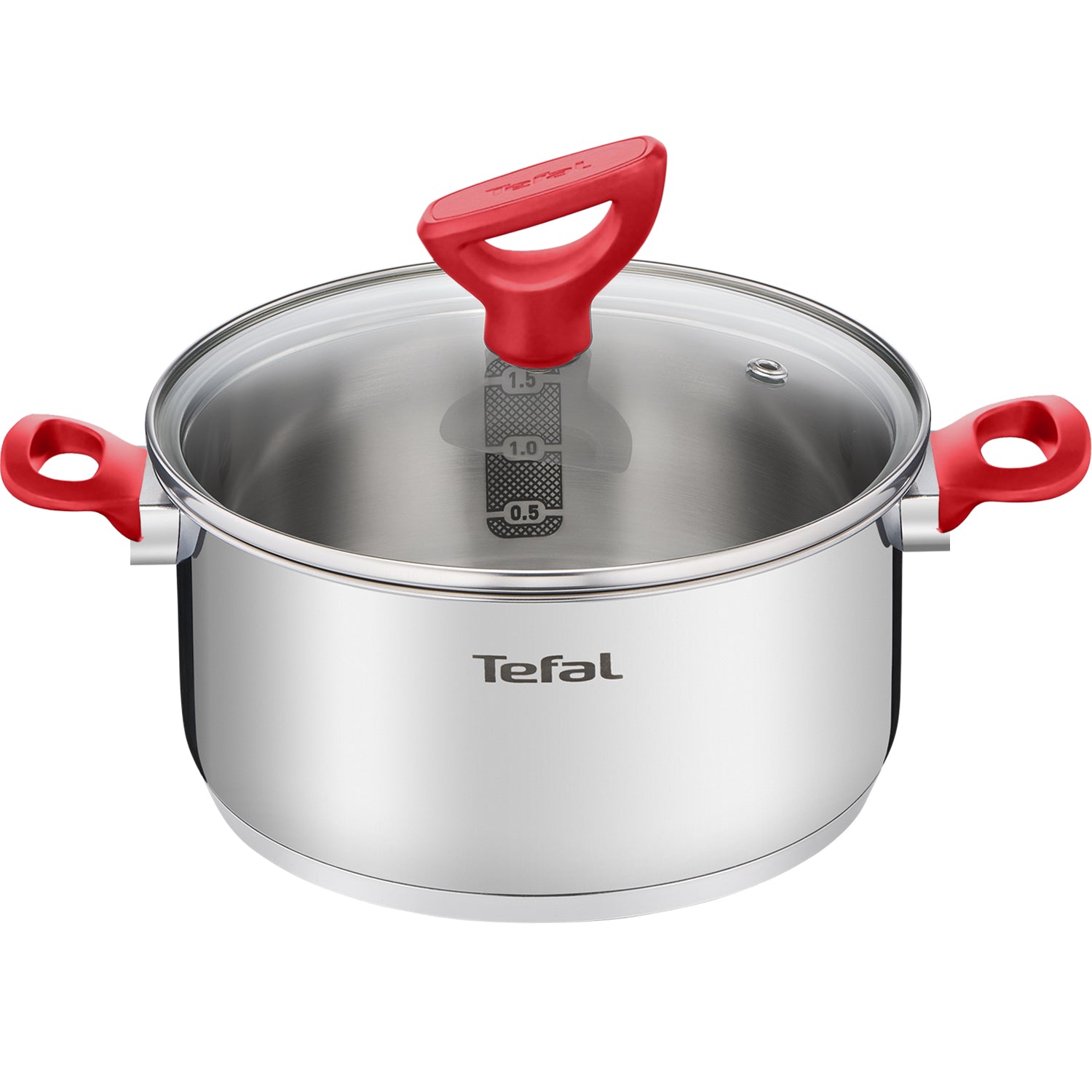 Tefal Edition Red Stainless Steel Induction Stewpot (24cm, 5.0L) Dishwasher Oven Safe No PFOA Silver