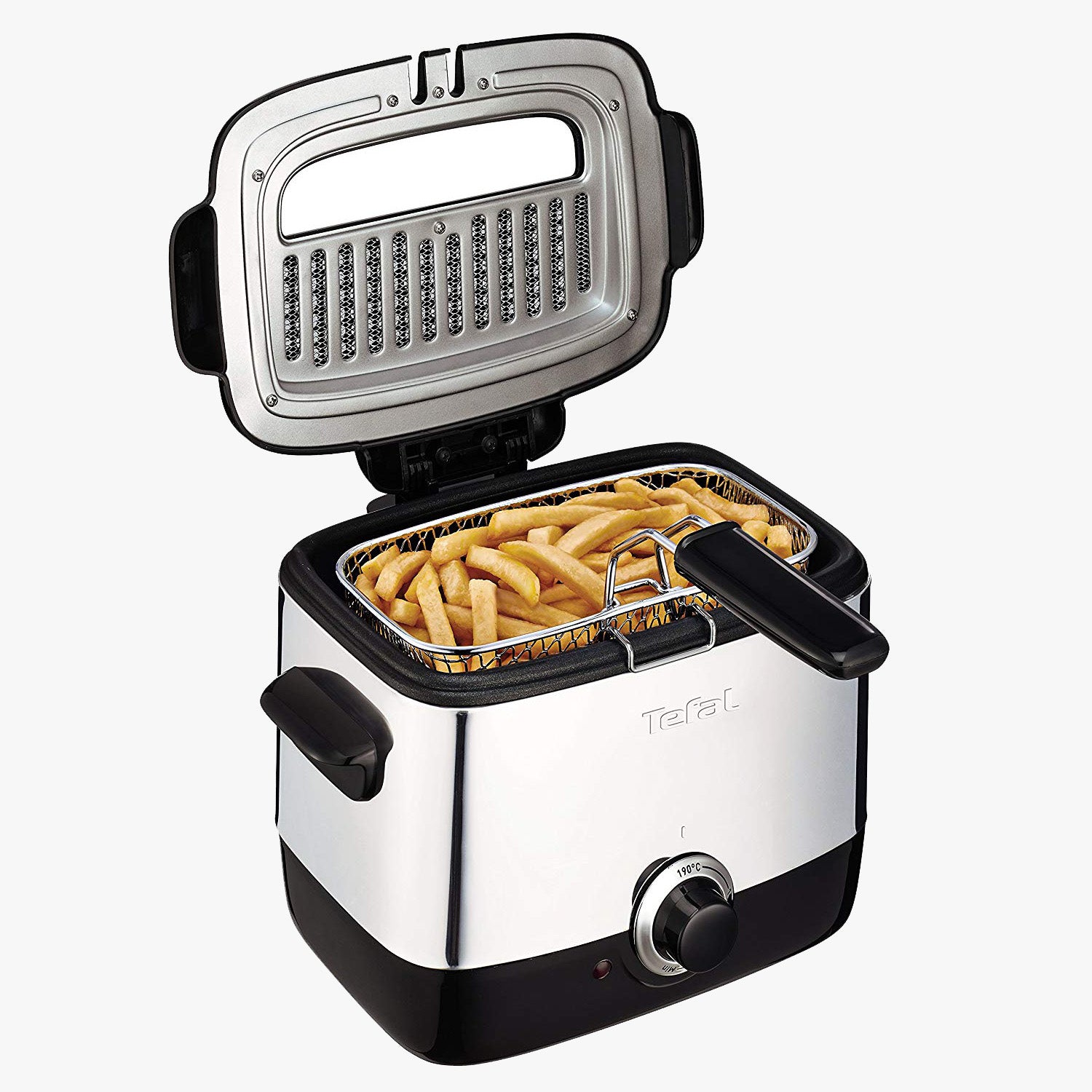 Easy to use starting with a simple switch at the back of the appliance, it fries food from 302℉ to 374℉ (150°C to 190°C).