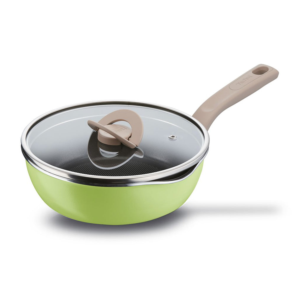Tefal Induction One Pick Pot Pan (22cm) with Glass Lid Dishwasher Oven Safe No PFOA Green