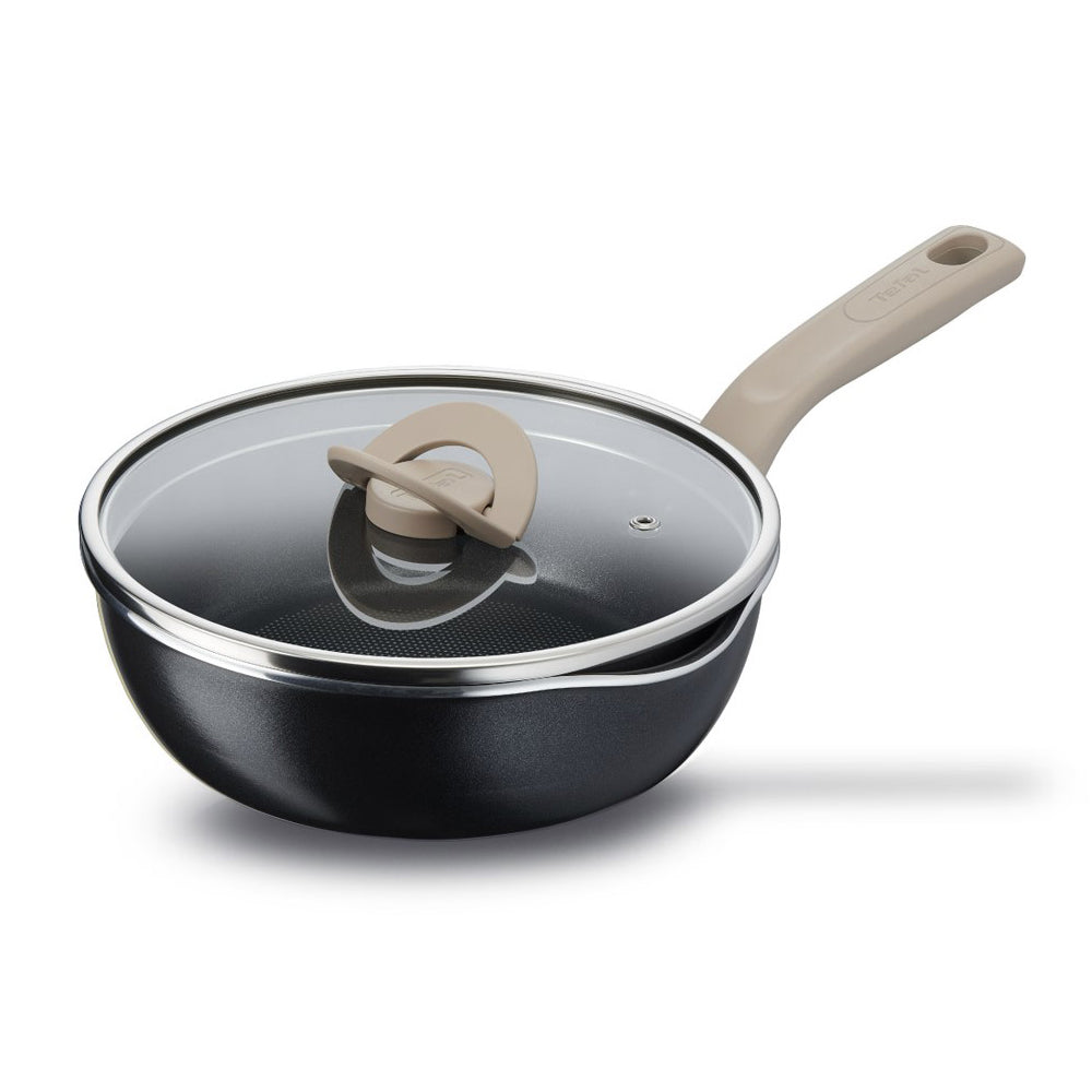 Tefal Induction One Pick Pot Pan (22cm) with Glass Lid Dishwasher Oven Safe No PFOA Black