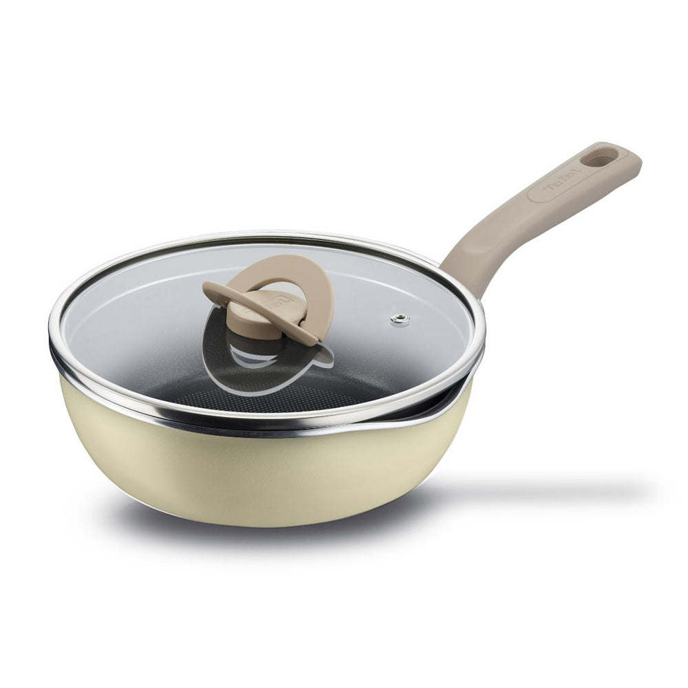 Tefal Induction One Pick Pot Pan (22cm) with Glass Lid Dishwasher Oven Safe No PFOA Beige