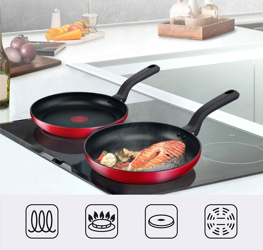 Tefal Red Delight Induction Frying Pan 2p (24cm + 28cm) Dishwasher Oven Safe No PFOA Red